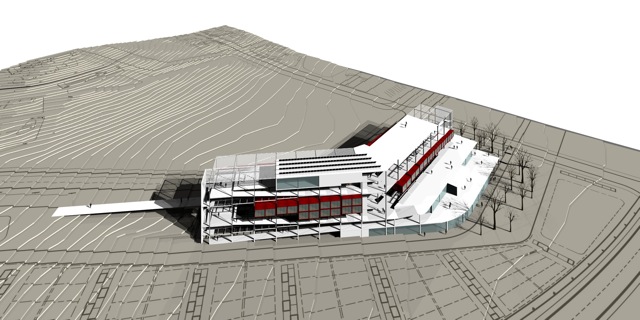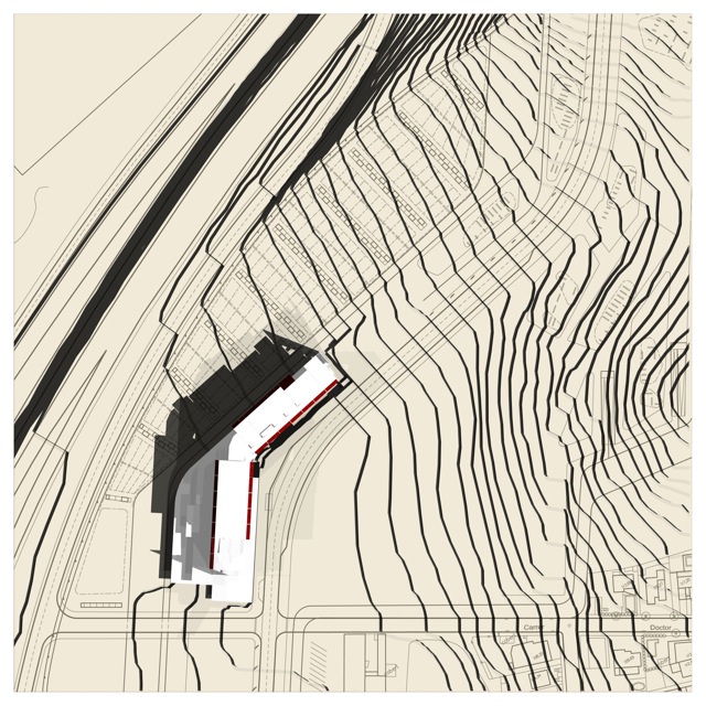 La proposta es situa a Montmeló, on “cosint” la fragmentació del territori, es projecta una intervenció urbanística per tal de coronar els límits del poble i connectar-lo amb el circuit. El projecte es presenta com a una investigació que desenvolupa el disseny d’un procés que afecta a tota la zona d’intervenció. El procés inclou una gestió la qual es veu expressada en l’estructura reticular de l’edifici al entendre la retícula vertical com una divisió de parcel•les i en una construcció modular inserida en aquesta divisió. L’edifici es base en una organització mixta a base de mòduls prefabricats i inclou una sèrie d’equipaments distribuïts estratègicament per tal de garantir un servei eficient al bloc. Un recorregut lineal en rampa recorre l’edifici i porta el carrer fins a la coberta on es finalitza amb un equipament públic que relaciona el projecte global. El procés inclou uns paràmetres de sostenibilitat que garantitzaran un grau de contaminació baix i un grau de reciclatge elevat.